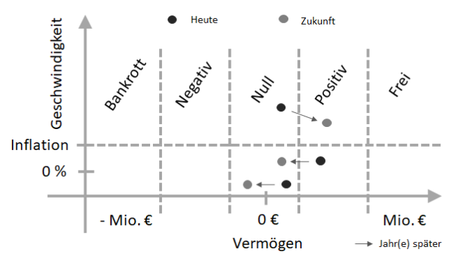 Aus meiner Sicht reicht obige Grafik vollkommen aus, um ein gutes Verständnis der eigenen finanziellen Situation und der zukünftigen Entwicklung zu erhalten. Die Achsen der Grafik zeigen dabei die Vermögenshöhe, waagrechte Achse, und die Geschwindigkeit mit der Du Dich bewegst, senkrechte Achse. Dein Vermögen ist einfach zu bestimmen, irgendwo zwischen Bankrott und finanzieller Freiheit. Die…
