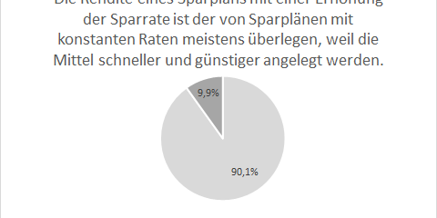 Außerdem ist zu berücksichtigen, dass höhere Sparraten im Vorteil sind, weil im Durchschnitt mehr Geld investiert ist. Richtig wäre somit höchstens eine antizyklische Strategie, bei der zusätzlich bei steigenden Kursen die Sparrate gesenkt wird.